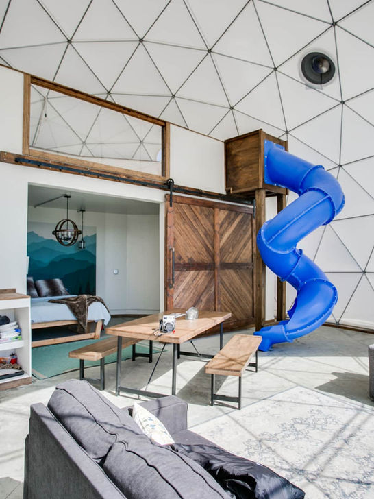 Our Ultimate slide dome aims to impress, with amenities like a private indoor bathroom, private hot tub, and indoor slide. Outside guests enjoy a large grassy yard in front of our small pond where fireflies light up summer nights